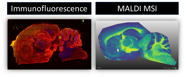 We develop methods that allow for multimodal analysis of the same sample in order to get a more wholistic view of the molecular and cellular microenvironment of samples. By combining things like MALDI MSI and Immunofluorescence microscopy on the same piece of tissue we are able to overlay cellular and molecular information to better understand disease. This can be challenging since some modalities don’t typically interact well with each other.