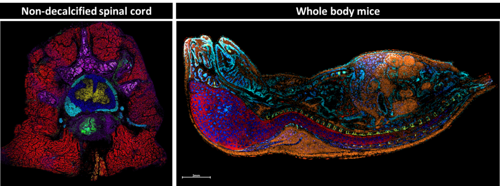 We develop methods for preparing traditionally difficult samples such as fresh-frozen, undecalcified spine and whole-body mice. This allows us to study the native metabolomics of complex and fragile samples by doing data analysis in situ, keeping the spatial context intact. These methods can be used to study development and neurological conditions while minimizing disturbances to the native molecular environment.